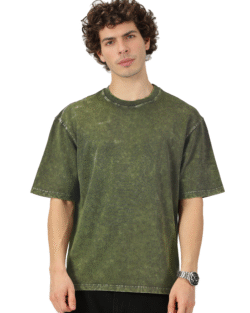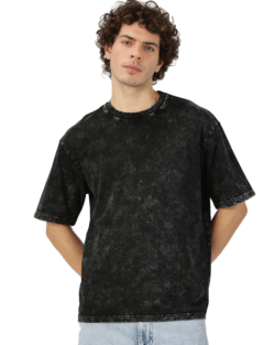 Caseria Men’s 240 GSM Cotton Acid Wash Oversized T-shirt – Plain