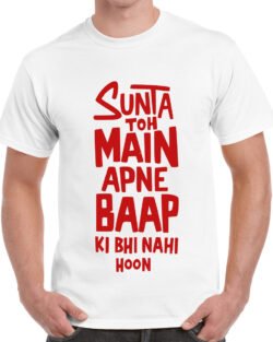 Caseria Men’s Cotton Graphic Printed Half Sleeve T-Shirt – Sunta Mein Baap Ki Bhi Nahi