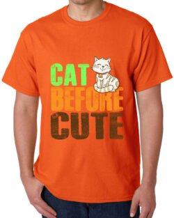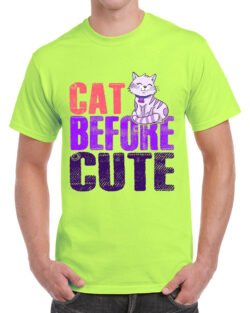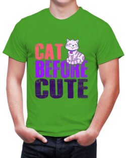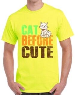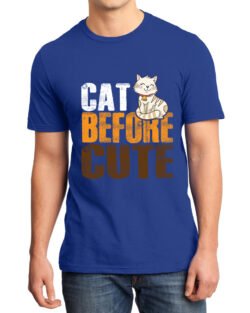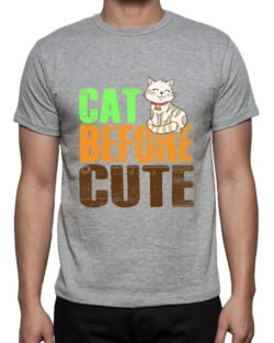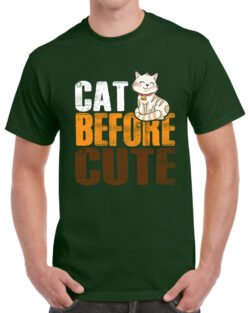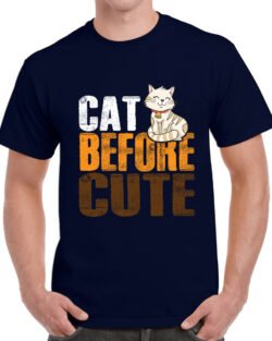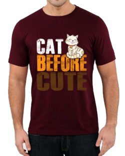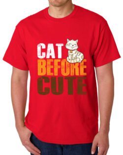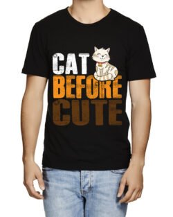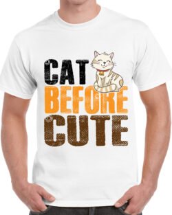 Caseria Men’s Round Neck Cotton Half Sleeved T-Shirt With Printed Graphics – Cute Cat Before