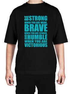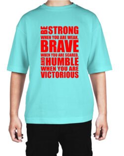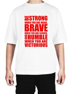 Caseria Men’s Cotton Biowash Oversized T-shirt – Strong Brave And Humble Pattern
