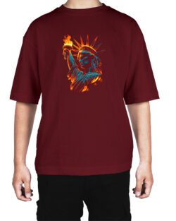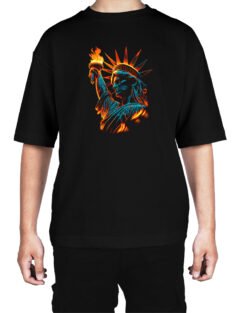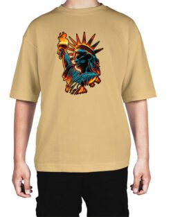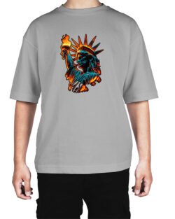 Caseria Men’s Cotton Biowash Oversized T-shirt – Statue of Liberty