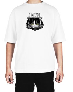 Caseria Men’s Cotton Biowash Oversized T-shirt – Cat I Hate You