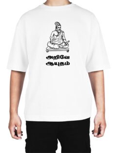 Caseria Men’s Cotton Biowash Oversized T-shirt – Knowledge is a weapon Tamil