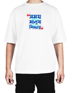Caseria Men’s Cotton Biowash Oversized T-shirt – Time Teaches Bengali