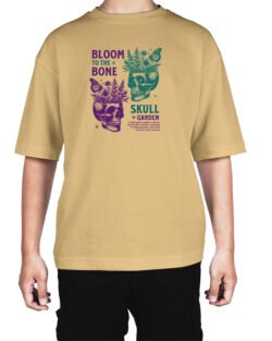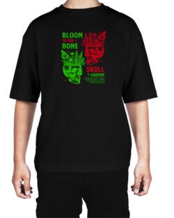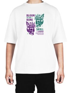 Caseria Men’s Cotton Biowash Oversized T-shirt – Bloom Bone Skull