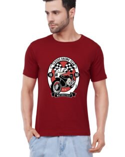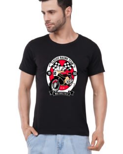 Caseria Men’s Cotton Graphic Printed Half Sleeve T-Shirt – Motorcycle Racing