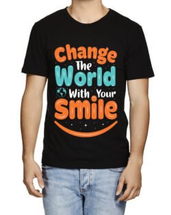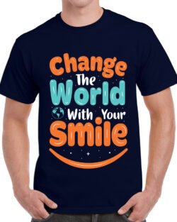 Caseria Men’s Round Neck Cotton Half Sleeved T-Shirt With Printed Graphics – Change World