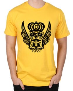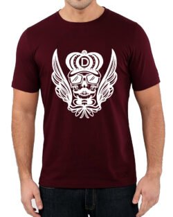 Caseria Men’s Round Neck Cotton Half Sleeved T-Shirt With Printed Graphics – Skull Wing