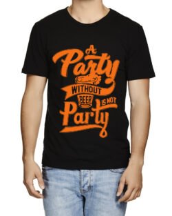 Caseria Men’s Cotton Graphic Printed Half Sleeve T-Shirt – Party Without Beer
