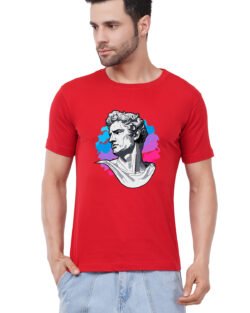 Caseria Men’s Cotton Graphic Printed Half Sleeve T-Shirt – National Red Wood