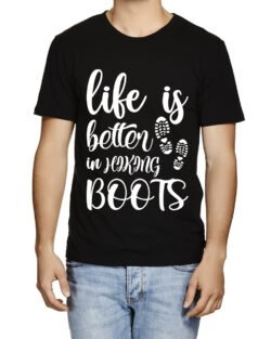 Caseria Men’s Cotton Graphic Printed Half Sleeve T-Shirt – Life Is Better Boots