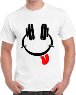 Caseria Men’s Cotton Graphic Printed Half Sleeve T-Shirt – Music Smiley