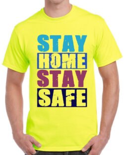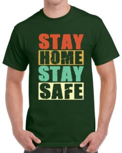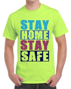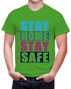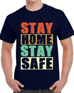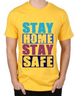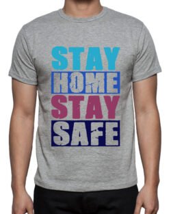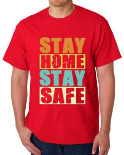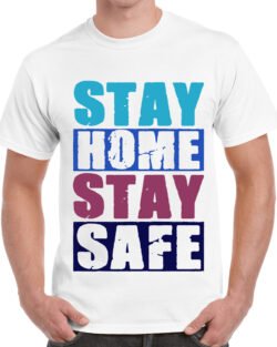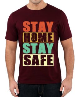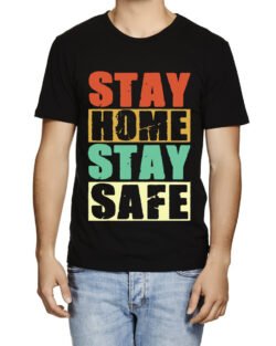 Caseria Men’s Round Neck Cotton Half Sleeved T-Shirt With Printed Graphics – Stay Home Safe