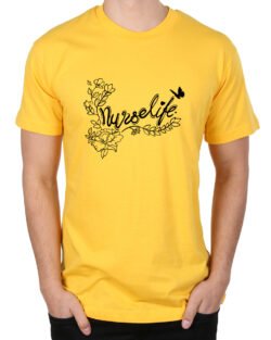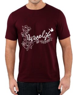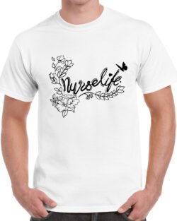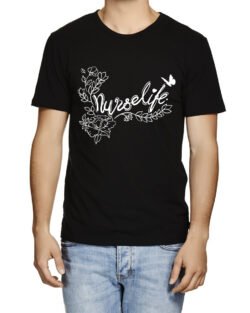 Caseria Men’s Round Neck Cotton Half Sleeved T-Shirt With Printed Graphics – Nurse Life Butterfly