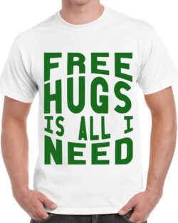 Caseria Men’s Cotton Graphic Printed Half Sleeve T-Shirt – Free Hugs I Need