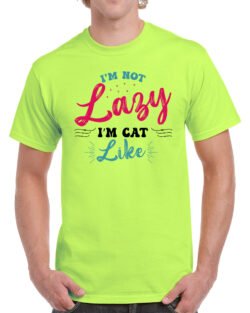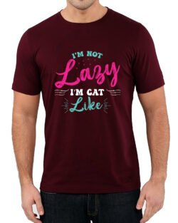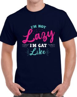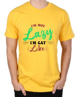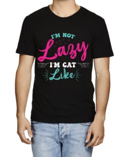 Caseria Men’s Round Neck Cotton Half Sleeved T-Shirt With Printed Graphics – Cat Like Lazy