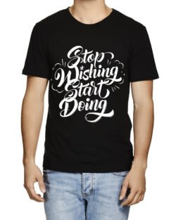 Caseria Men’s Cotton Graphic Printed Half Sleeve T-Shirt – Stop Wishing Start Doing