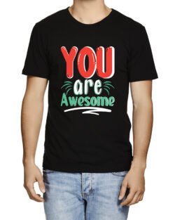 Caseria Men’s Round Neck Cotton Half Sleeved T-Shirt With Printed Graphics – You Are Awesome