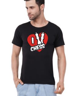 Caseria Men’s Cotton Graphic Printed Half Sleeve T-Shirt – I Love Chess