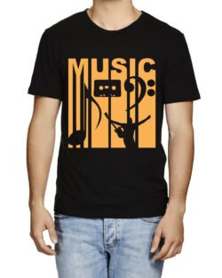 Caseria Men’s Cotton Graphic Printed Half Sleeve T-Shirt – Music Calligraphy