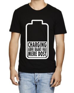 Caseria Men’s Cotton Graphic Printed Half Sleeve T-Shirt – Charging Abhi Baki Hai