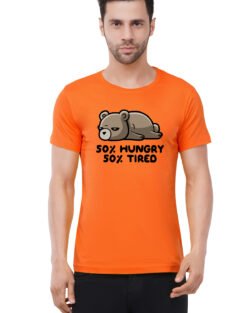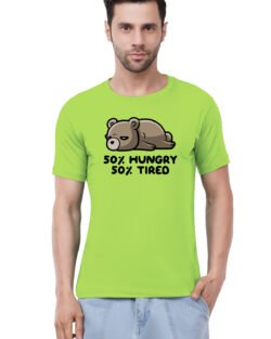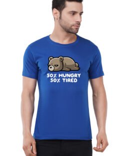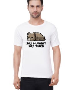 Caseria Men’s Cotton Graphic Printed Half Sleeve T-Shirt – 50% Hungry Tired
