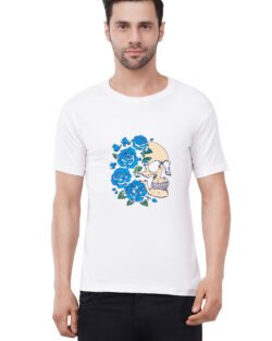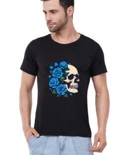 Caseria Men’s Cotton Graphic Printed Half Sleeve T-Shirt – Blue Rose Skull