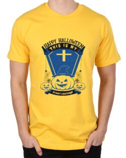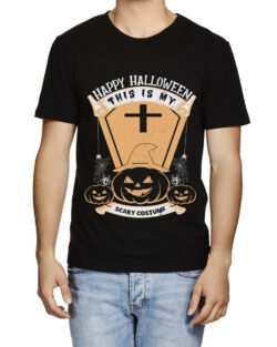 Caseria Men’s Round Neck Cotton Half Sleeved T-Shirt With Printed Graphics – Happy My Scary