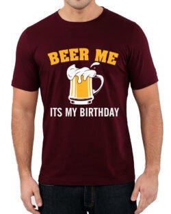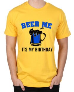 Caseria Men’s Round Neck Cotton Half Sleeved T-Shirt With Printed Graphics – Beer Me Birthday