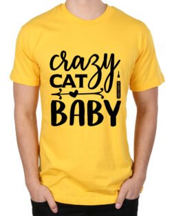 Caseria Men’s Round Neck Cotton Half Sleeved T-Shirt With Printed Graphics – Cat Crazy Baby