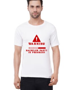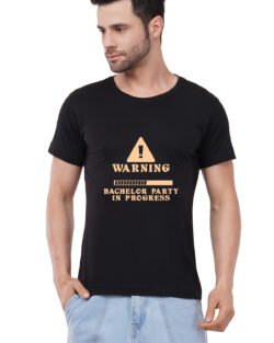 Caseria Men’s Cotton Graphic Printed Half Sleeve T-Shirt – Warning Bachelor Party