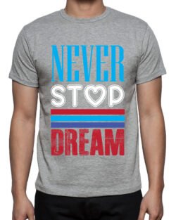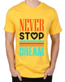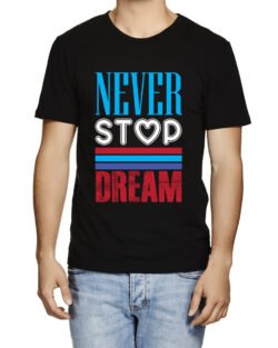 Caseria Men’s Round Neck Cotton Half Sleeved T-Shirt With Printed Graphics – Never Stop Dream