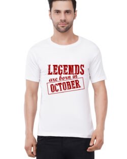 Caseria Men’s Cotton Graphic Printed Half Sleeve T-Shirt – Legends Are Born In October Pattern