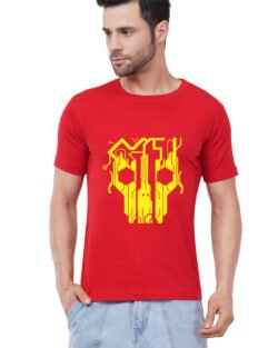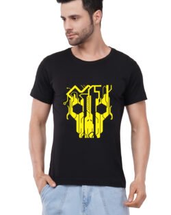 Caseria Men’s Cotton Graphic Printed Half Sleeve T-Shirt – Machanical Skull