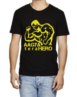 Caseria Men’s Cotton Graphic Printed Half Sleeve T-Shirt – Aagaya Tera Hero