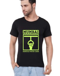 Caseria Men’s Cotton Graphic Printed Half Sleeve T-Shirt – Mumbai Handle With Care