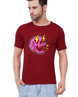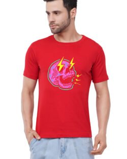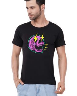 Caseria Men’s Cotton Graphic Printed Half Sleeve T-Shirt – Skull Thund