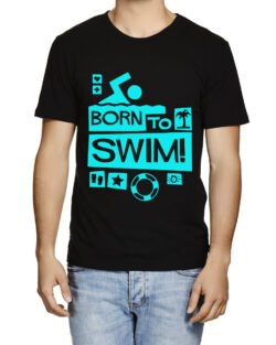 Caseria Men’s Cotton Graphic Printed Half Sleeve T-Shirt – Born To Swim