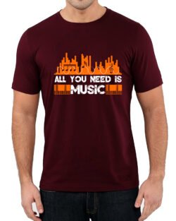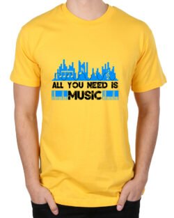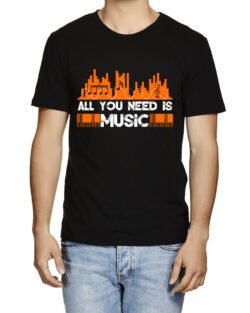 Caseria Men’s Round Neck Cotton Half Sleeved T-Shirt With Printed Graphics – All You Need Is Music