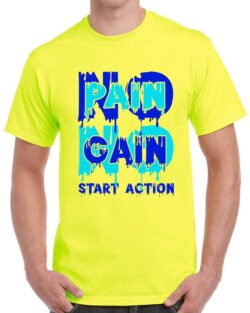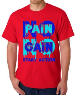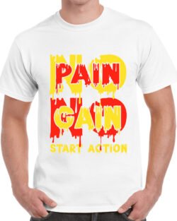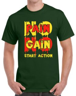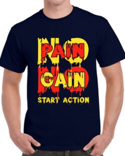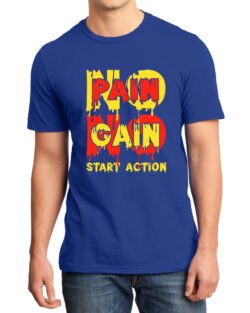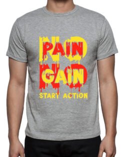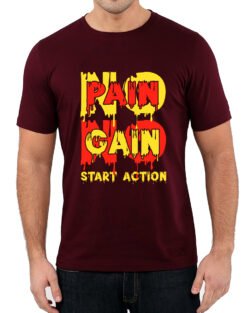 Caseria Men’s Round Neck Cotton Half Sleeved T-Shirt With Printed Graphics – Pain Gain Start Action