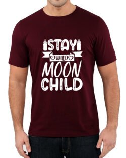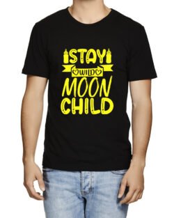 Caseria Men’s Round Neck Cotton Half Sleeved T-Shirt With Printed Graphics – Stay Wild Moon