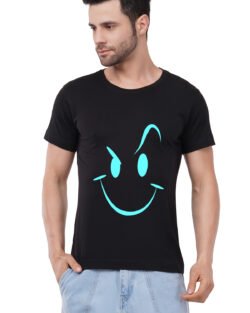 Caseria Men’s Cotton Graphic Printed Half Sleeve T-Shirt – Smiley Stroke
