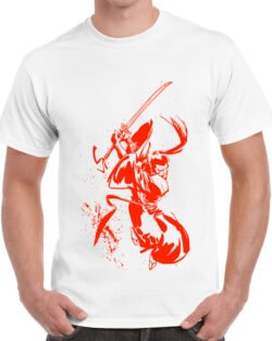 Caseria Men’s Cotton Graphic Printed Half Sleeve T-Shirt – Sketch Art Samurai