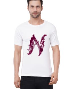Caseria Men’s Cotton Graphic Printed Half Sleeve T-Shirt – Letter N With Wings