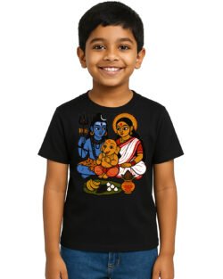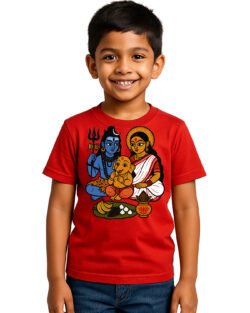 Caseria Kid’s Cotton Graphic Printed Half Sleeve T-Shirt – Devi Maa Family