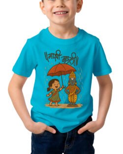 Caseria Kid’s Cotton Graphic Printed Half Sleeve T-Shirt – Bhiu Nakos Mi Tujhya Marathi