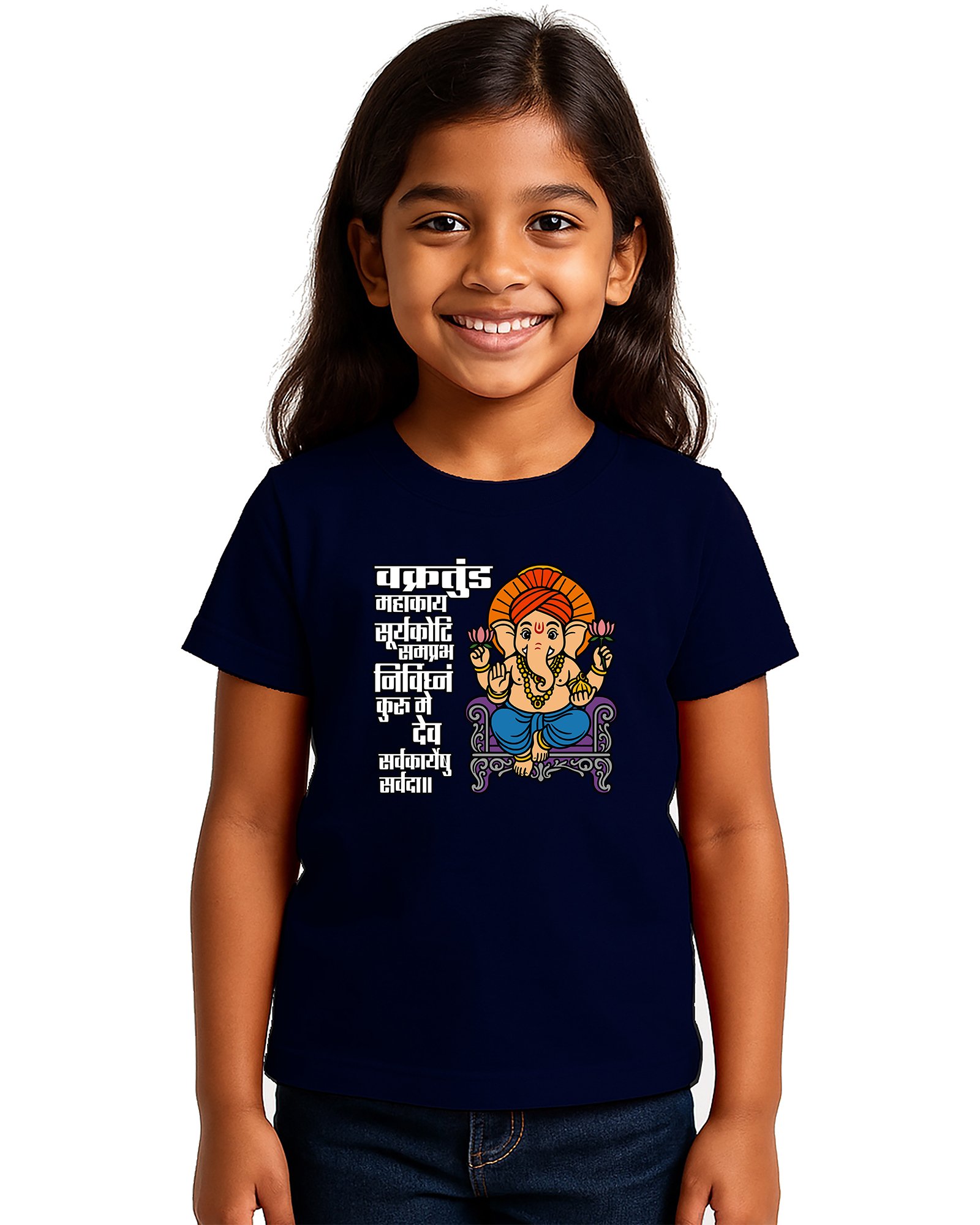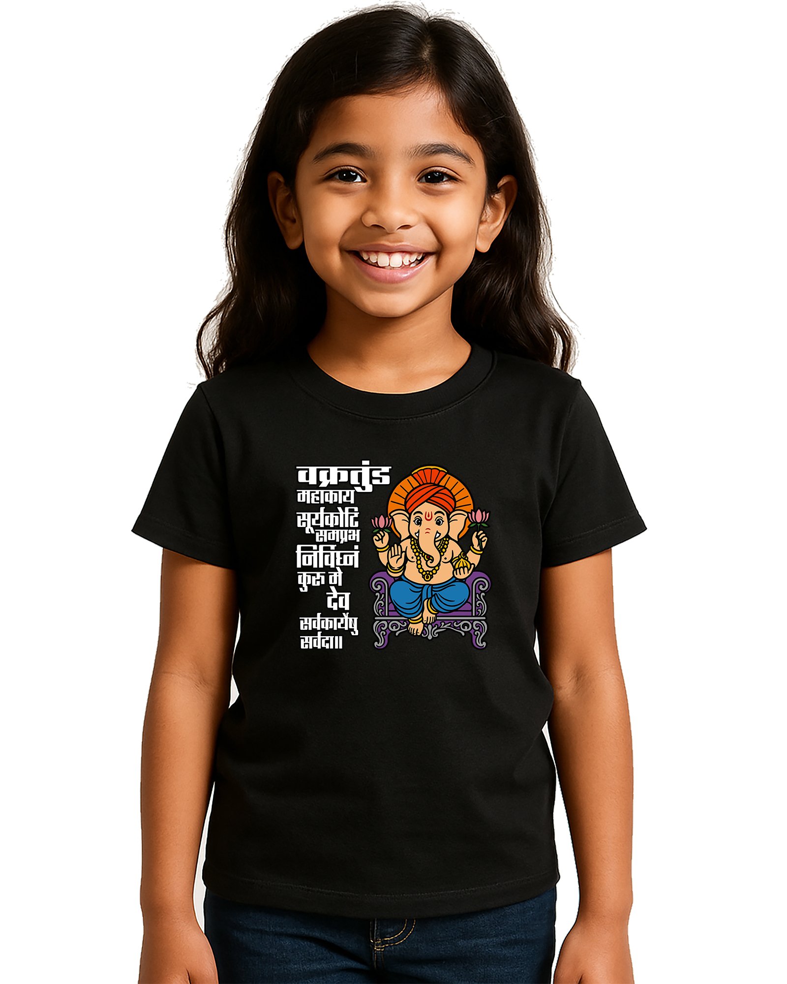 Caseria Girl’s Cotton Graphic Printed Half Sleeve T-Shirt – Vakrtunda Mahakaya
