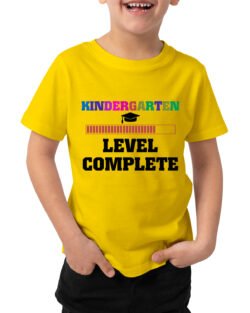 Caseria Kid’s Cotton Graphic Printed Half Sleeve T-Shirt – Level Complete Kinder Garten