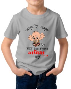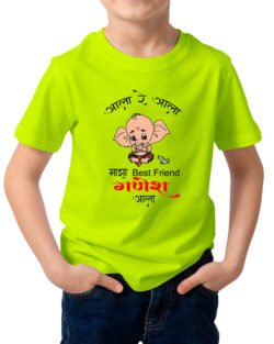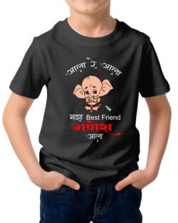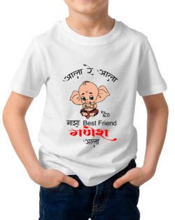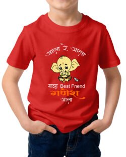 Caseria Kid’s Cotton Graphic Printed Half Sleeve T-Shirt – Friend Ganesha Aala