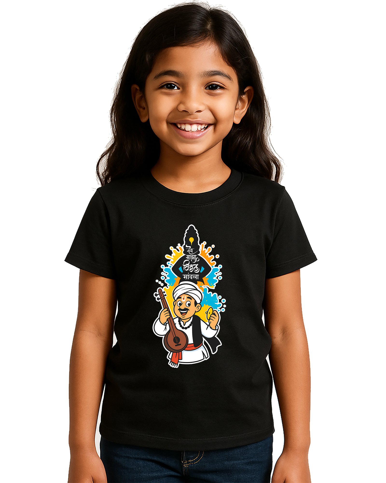 Caseria Girl’s Cotton Graphic Printed Half Sleeve T-Shirt – Pandhari Nivasa Sakhya Marathi
